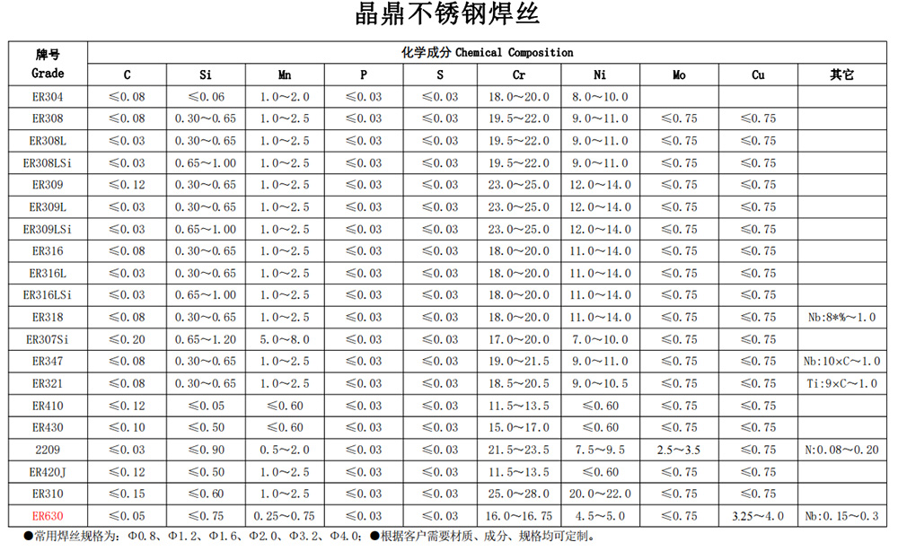 鈷基堆焊焊絲HS111、HS112、HS113、HS114、HS115、HS116、HS117、HS101 、HS103國產(chǎn)的硬質(zhì)合金堆焊焊絲有高鉻合金鑄鐵(索、瑪依特)和鈷基合金(司太立)兩類。上述合金因不能進行軋拔等加工,故一般以鑄造焊絲或用線材水平連鑄方法來鑄造。可采有氧-乙炔或氣氣體保護焊。 此種類焊絲堆焊層具有優(yōu)良的抗氧化和耐氣蝕性能,硬度較高 耐磨性好,HS103是含硼的高鉻鑄鐵堆焊焊絲其堆焊層 就是用硬質(zhì)合金刀具也難進行切削加工耐磨度較強。